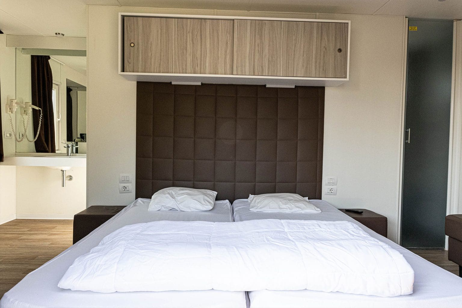 Le Mobil-home Mini Suite 2 personnes, est un oasis de confort et de romantisme, son aménagement amélioré et le choix de ses matériaux, une touche luxueuse pour des vacances en camping.