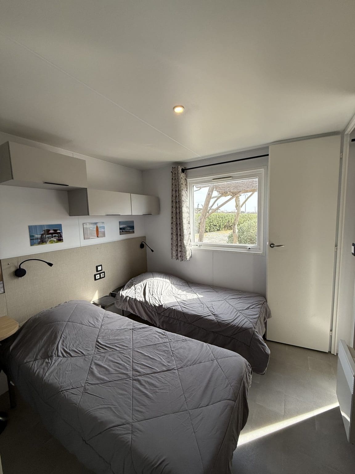 Le Mobil-home Iroise Grand Confort est un lieu de tranquillité et de bien-être, idéal pour des vacances en famille ou entre amis. Vous y trouverez tout ce dont vous avez besoin pour passer un séjour mémorable, que ce soit pour préparer des repas délicieux, vous détendre sur la terrasse ou rester au frais grâce à la climatisation pendant les journées chaudes. Réservez dès maintenant pour vivre des vacances exceptionnelles.