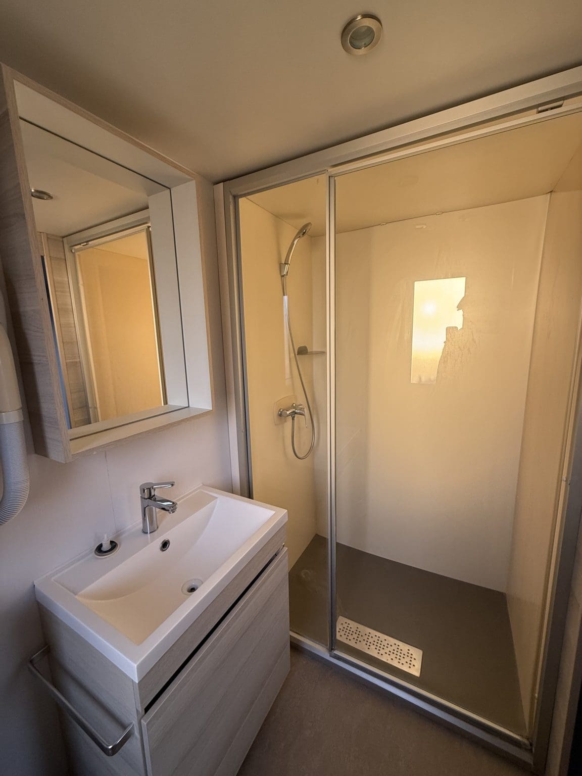 Le Mobil-home Key West 4 personnes a une superficie totale de 35 m², repartit sur 2 chambres, un salon, une cuisine équipée avec îlot central, deux salles de bains et deux WC dont un séparé.